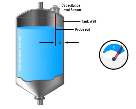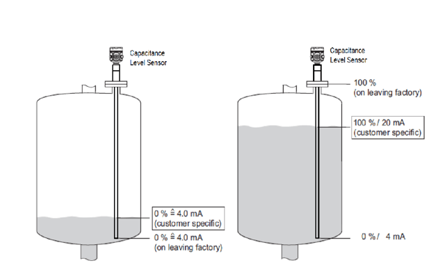 The principle of capacitance level measurement is based on the change in capacitance of the capacitor due to the change in the level. The probe and container wall (conductive material) form an electric capacitor. When the probe is in air (1), a certain low initial capacitance is measured. When the container is filled, the capacitance increases the more the probe is covered (2), (3) . As of a conductivity of 100 μs/cm, the measurement is independent of the value for the dielectric constant (DK) of the liquid. As a result, fluctuations in the DK value do not affect the measured value display. Furthermore, the system also prevents the effect of medium buildup or condensate near the process connection for probes with an inactive length.