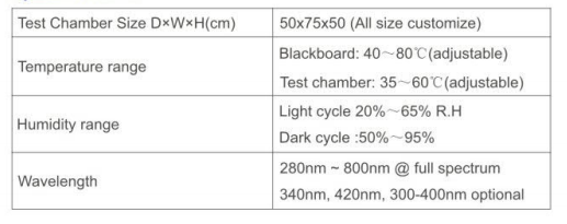 This machine is a comprehensive climate testing machine, can do climatic aging test and the lightfastness test of polymer materials which exposed at simulated sunlight. It simulates the light, temperature, rainfall, condensing, humidity